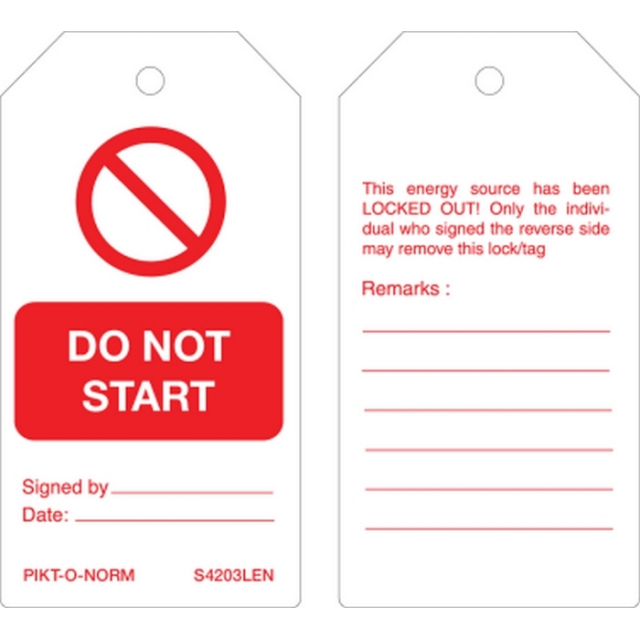 Master Lock S4203LEN Guardian Extreme "Do Not Start" Safety Tag, (Pack of 6 pcs)