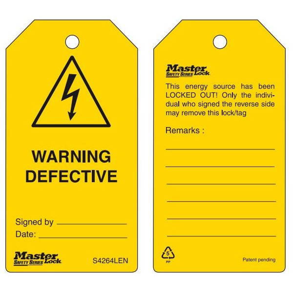 Master Lock S4264LEN Guardian Extreme "Warning Defective" Safety Tag, (Pack of 6 pcs)
