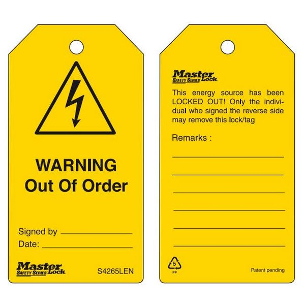 Master Lock S4265LEN Guardian Extreme "Warning Out Of Order" Tag, (Pack of 6 pcs)