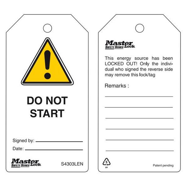 Master Lock S4303LEN Guardian Extreme "Do Not Start" Safety Tag, (Pack of 6 pcs)