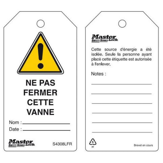 Master Lock S4308LFR Guardian Extreme "Do Not Close" Tag, French, (Pack of 6 pcs)