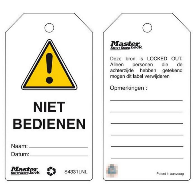 Master Lock S4331LNL Guardian Extreme "Do Not Use" Safety Tag, Dutch, (Pack of 6 pcs)