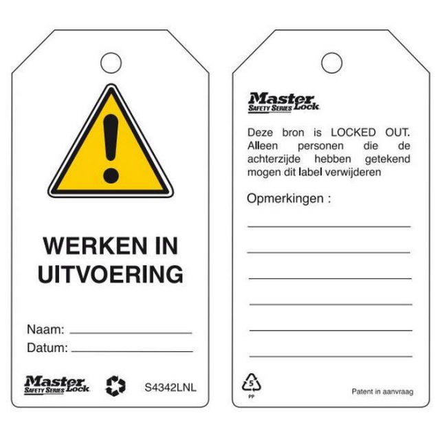 Master Lock S4342LNL Guardian Extreme "Employees" Safety Tag, Dutch, (Pack of 6 pcs)