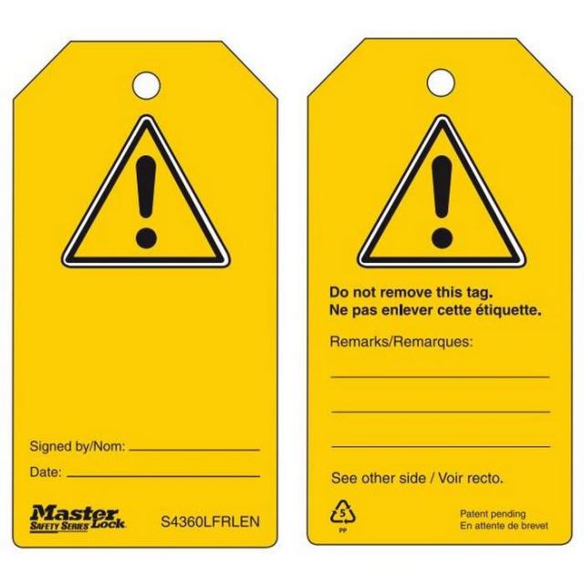 Master Lock S4360LFRLEN Yellow Guardian Extreme Blank Safety Tag, (Pack of 6 pcs)