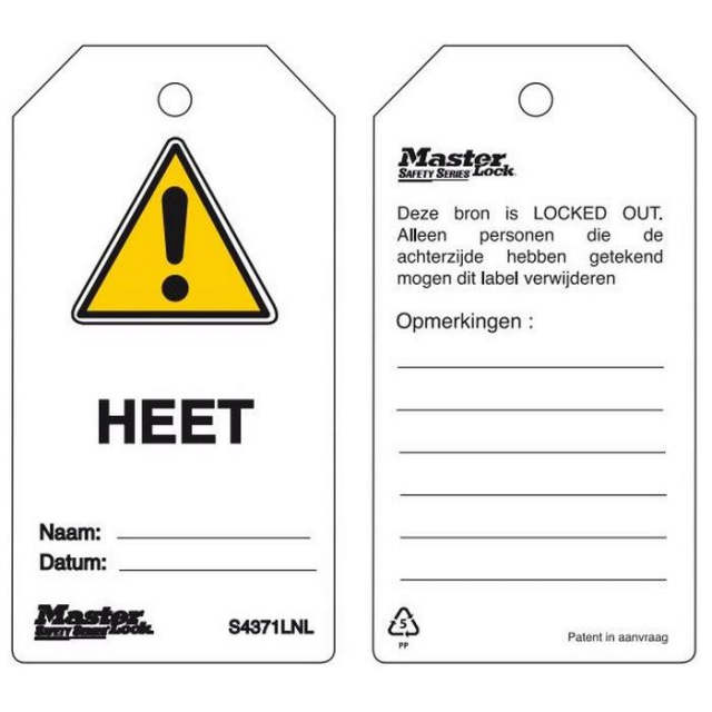 Master Lock S4371LNL Guardian Extreme "Hot" Safety Tag, Dutch, (Pack of 6 pcs)
