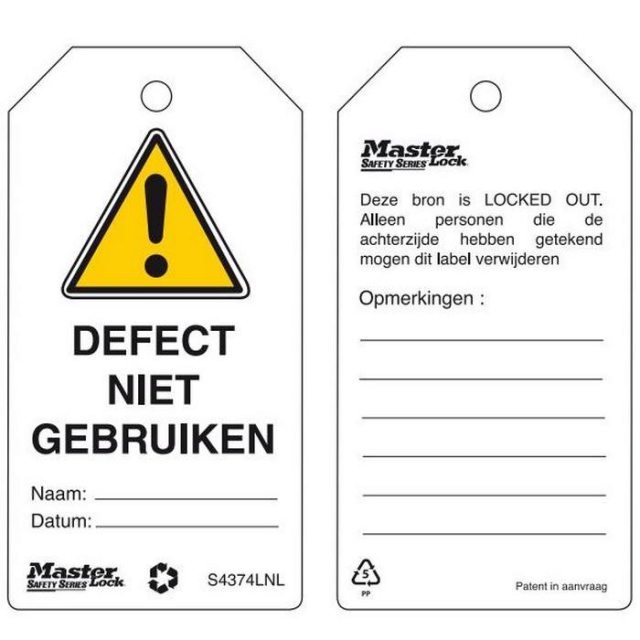 Master Lock S4374LNL Guardian Extreme "Out of Service" Tag, Dutch, (Pack of 6 pcs)