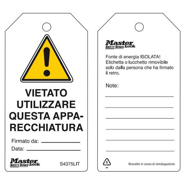 Master Lock S4375LIT Guardian Extreme "Do Not Use" Tag, Italian, (Pack of 6 pcs)