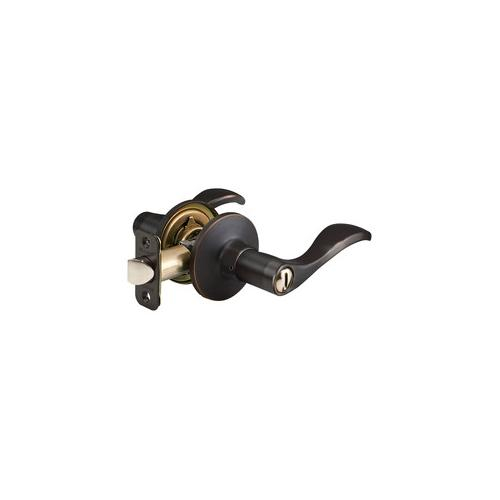 Features a wave style lever with six-way adjustable latch to fit all doors with 2-3/8in or 2-3/4in backset, square, rounded corners, or drive-in. This knob offers ANSI GRADE 3 performance for interior locking applications. The aged bronze finish provides a sleek appearance.