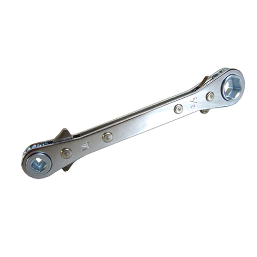 Compact chrome plated wrench specially designed for use in hard to reach places. 1/4, 3/8, 3/16 and 5/16" square ratchet.