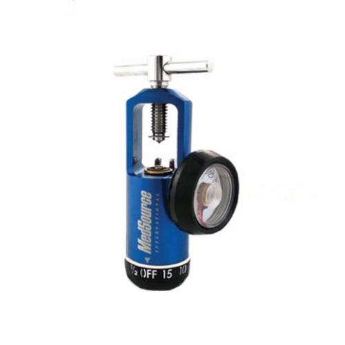 The MedSource 0-15 LPM Oxygen Regulator features an ergonomic “easy grip” dial and large easy-to-read numbers. The dial is constructed of impact resistant TPE plastic. The “ T” style handle is Fitted with a screw top to prevent handle loss. Ignition tested according to CGA/ASTM standards.