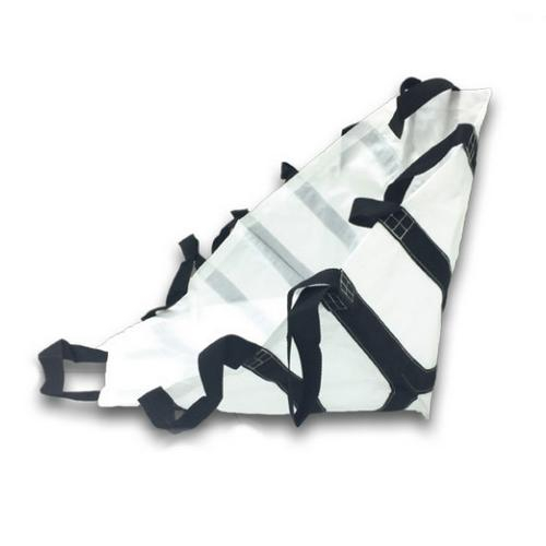 The Patient Mover Rescue Chair is a lightweight and compact chair stretcher used to transport patients through narrow hallways, up and down stairs and from confined spaces. The Rescue Chair is fluid impervious, disposable and easily folds up to be stored in a rescue bag. Made from a heavy duty non-woven material, the Rescue Chair is able to handle heavy loads and features 8 handles to allow for extra handlers while carrying larger patients.