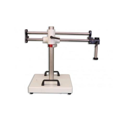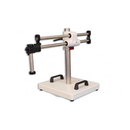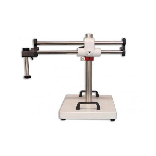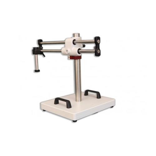 The BAS-2 Heavy Duty Dual Boom Stand with 20mm dropdown for EM Series heavy duty dual arm industrial-type boom stand comes with a 20mm diameter drop down mounting post to perfectly complement our EMZ (Zoom), EMT (Turret), EMF (Fixed) Series Stereo Microscope with the proper focus block. The BAS-2 provides complete flexibility for smooth horizontal and vertical movement and adjustment. The BAS-2 uses linear ball bearings to support the horizontal arm, allowing it to glide over the work surface with none of the binding inherent in other boom stands. It is now possible to scan a large flat area, such as a printed circuit board, by simply guiding the microscope with your hands. This is best made heavy Duty Boom stand from U.S.A. There is zero friction motion from precision roller bearings machined into cast housings along with a sturdy solid 80 lbs. metal 13 inch x 13 inch x 1.5 inch base with heavy duty rubber feet and ergonomic handles provides an excellent solution for heavy duty and industrial applications requiring smooth friction free travel.