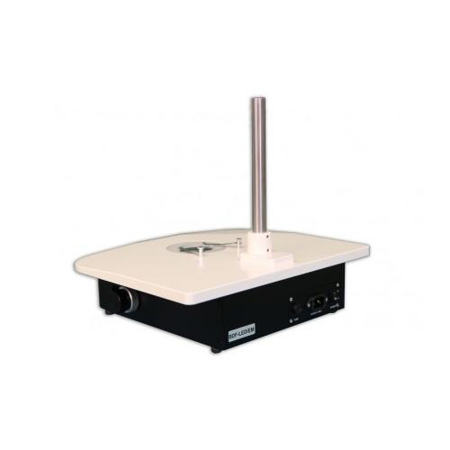 BD-M-LED is a wide surface LED Brightfield/Darkfield stand for applications that require transmitted oblique illumination or angle light is required. This is a popular stand for protein crystallography, equine or bovine embryo transfer. This specialized stand contains a reflection mirror in the base that is rotatable which allows the LED illumination to hit the sample at oblique angles. This stand is a simple and popular method for rendering unstained and transparent specimens clearly visible, small aquatic organisms, oocytes, have refractive index ranging from 1.4-1.2 which has a negligible difference from their surrounding aqueous medium. This type of specimens are ideal candidates for observation with darkfield illumination techniques. The mirror can also slide forward and back to provide maximum light angle control. There is a locking ring once a desired angle is reached.