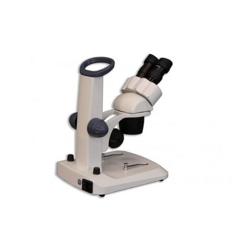 Meiji Techno America’s EM-30 Series meets the demand for a complete Advanced-level Binocular Dual turret style stereo microscopes with a built in 1x, 3x objectives giving the user 10X, 30X magnification with the standard 10X eyepiece. Equipped with LED illlumination in a stable large footprint design and a comfortable carrying grip for ease of portability. Binocular head is inclined at 45° tubes, One ± 5 diopter adjustment, Interpupillary distance adjustable between 55 mm and 75 mm. The EM-30 Binocular Turret Stereo Microscopes have crisp, erect images over a wide field of view. The stand is made out of metal cast alloy and has a rack and pinion design with coarse adjustment and tension control. Equipped with a Revolving nosepiece with Dual 1x/3x (EM-30) magnification objective with large field of view. Field of views 20 mm/6.6 mm, Working distance 100 mm Featuring incident and transmitted LED illumination, these student microscopes are built to last, year after year. Just perfect for grade schools and high schools! This series is a larger frame than the EM-20 models, great for observing any biological or physical science specimens, plants, insects etc., virtually any object because the stand allows the optics to be raised high enough to fit virtually any educational specimen.