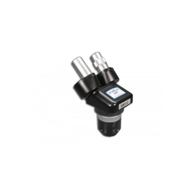 All EMT Series turret stereo microscope bodie feature a compact lightweight design. Every stereo body features adjustment diopter tubes and interpupillary distance adjustment. Observation tubes are inclined at 45°, 60° or 90° for convenient fatigue free viewing depending on the application, A range of fixed of tilting focus blocks are accessible to mount the microscope body onto existing O.E.M. equipment. A choice of Zoom, Turret or Fixed magnification bodies with various working distances, optional auxiliary objectives and eyepieces, multiple adjustable stands, versatile illumination systems, and auxiliary components allow the end user to design a system to fulfill their specific requirements.
