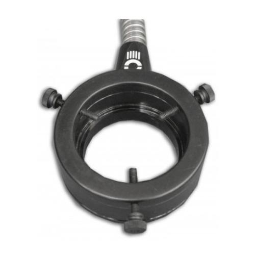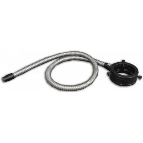 Is a ringlight with a 60 mm inner diameter top and 50 mm inner diameter bottom. It has SS Sheathing and 36" fiber cables. This Fiber Optic Annular Ring provides 360 degree illumination at a range of focal lengths. A rugged black anodized aluminum housing contains and protects the Borosilicate fiber