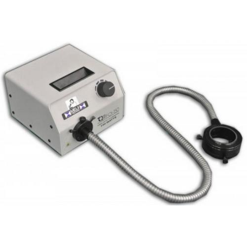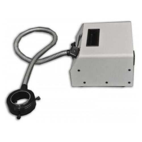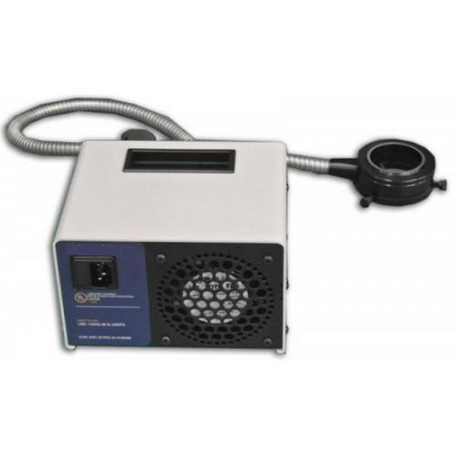 Illuminators are used in a wide range of manufacturing, microscopy, metrology, medical, research, and other applications. The Fiber Optic Illuminators are often referred to as "Cold Light" Illuminators because they provide high intensity, focused light without the heat typically associated with high intensity lamps. The common uses for the Microscopes and Video Microscopes Boroscopes, Industrial Imaging (Machine Vision), and Custom Process and Inspection Equipment (Wire Bonders, Laser Welding). Allows a uniform halogen illumination of focused white light which can be used in different applications. Included is an on/off intensity control which allows easy adjustment of intensity. In addition, the lock-in feature allows light guides to stay in place and permits the illuminator to operate on its back without fear of falling off