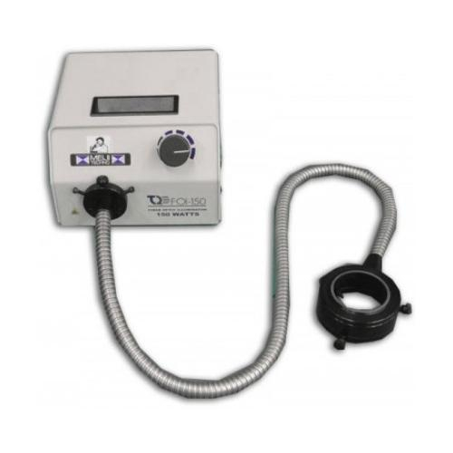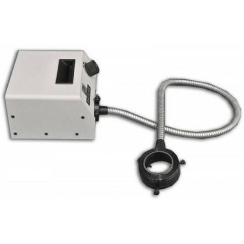 Illuminators are used in a wide range of manufacturing, microscopy, metrology, medical, research, and other applications. The Fiber Optic Illuminators are often referred to as "Cold Light" Illuminators because they provide high intensity, focused light without the heat typically associated with high intensity lamps. The common uses for the Microscopes and Video Microscopes Boroscopes, Industrial Imaging (Machine Vision), and Custom Process and Inspection Equipment (Wire Bonders, Laser Welding). Allows a uniform halogen illumination of focused white light which can be used in different applications. Included is an on/off intensity control which allows easy adjustment of intensity. In addition, the lock-in feature allows light guides to stay in place and permits the illuminator to operate on its back without fear of falling off