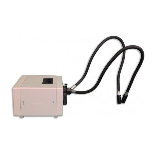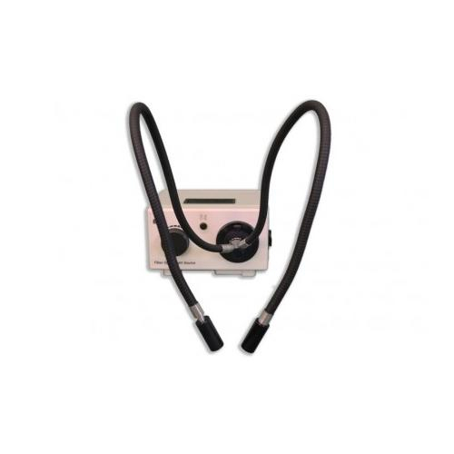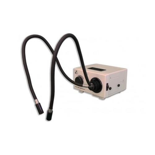 Variable intensity 150W quartz halogen light source with self supporting dual arm light guide can be used in a wide range of illumination tasks. Focusing lenses included. Color temperature: 3200K.
