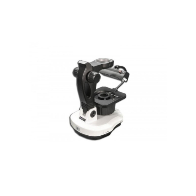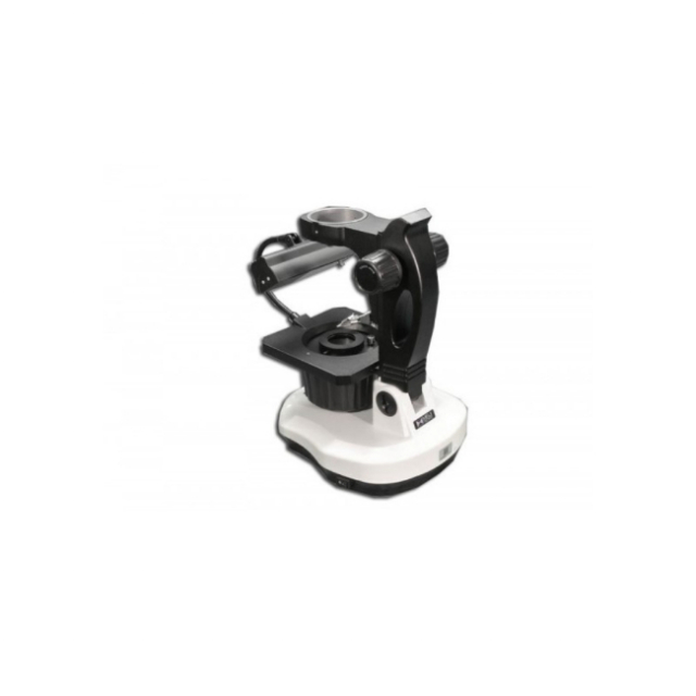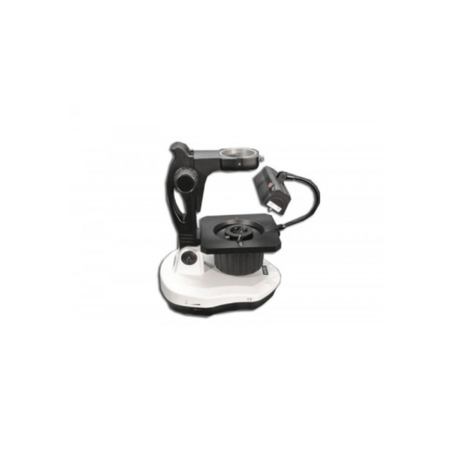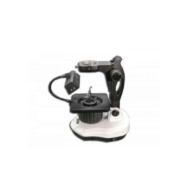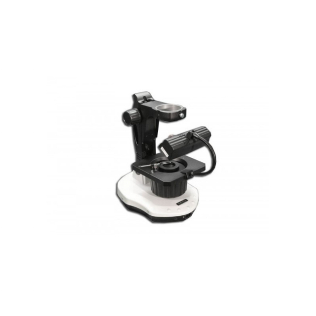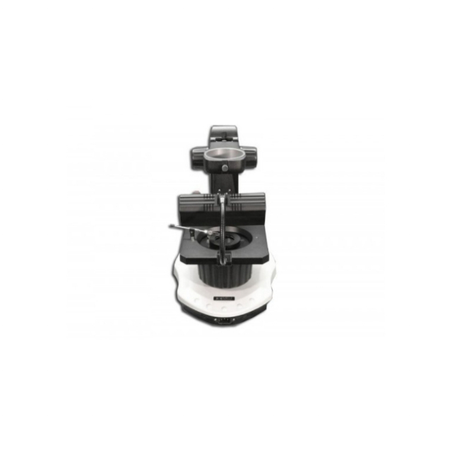 85mm GMZ/GMZT stand for inspecting. Has a track length of 250mm and a base dimension of 310mm x 250mm x 70mm This stand is inclinable and can be vertically angles from 0° - 45°. One of the light source has a top U-shaped fluorescent incident light while the other light is a transmitted halogen brightfield/darkfield switchable light. This stand also includes a Gemclamp and a iris diaphragm.