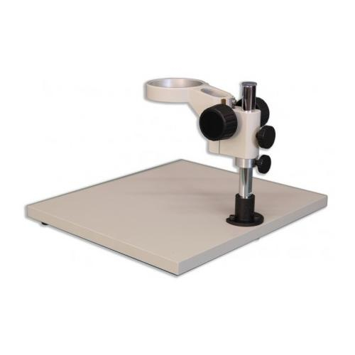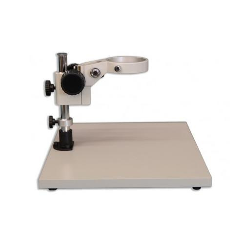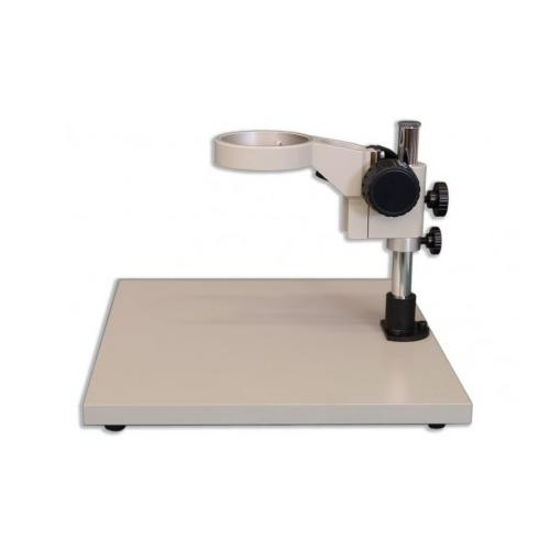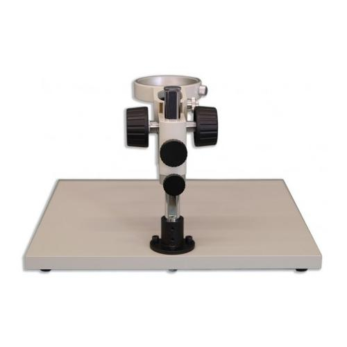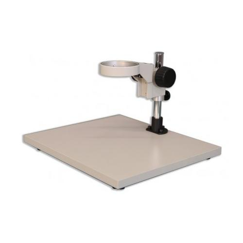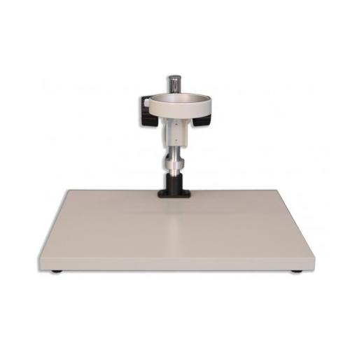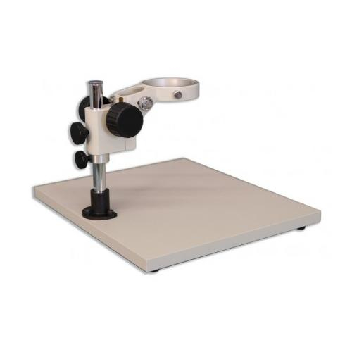 The KBL Wide-Surface Stand is a Meiji Techno America’s most popular Ergonomic 380mm x 330mm x 20mm flat Laminate Board stand which requires external illumination when an extended work surface is needed. This Ergonomic stand can accommodate large circuit boards or animal surgery which requires a wide surface area. Equipped with an integral FX focusing holder which has a illuminator port mount to accommodate a versatile LED illuminator or any fiber optic light option. The FX focus holder has a 84.5mm round diameter opening which is designed for the zoom, turret and fixed stereo bodies. The KBL Stand is a great complement to our Stereo microscopes due to the focus block’s ability to be easily raised vertically to accommodate different sample heights or special applications. A 5” (100mm) extension pillar for the threaded vertical post is also available if needed to accommodate taller specimens.