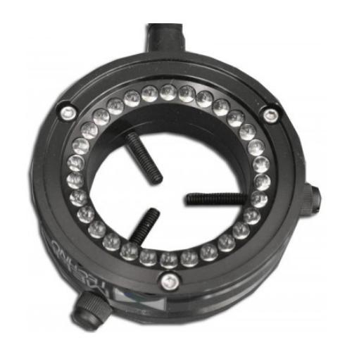 LEDs Segment Control Ring Light is carefully constructed by starting with an alluminum alloy that is precision machined. This unit has a 44 mm opening and is specifically designed to fit onto zoom and fxed optics commonly used for machine vision and automated imaging applications. An auto voltage sensing 100 – 240 VAC power supply is included