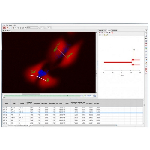 Cell Tracking recipe.Cell migration in response to external stimulus is a fundamental biological process. The Cell Tracking recipe detects cell regions and tracks the motion of individual cells over time. Specialized cell types and fluorophores are not required.