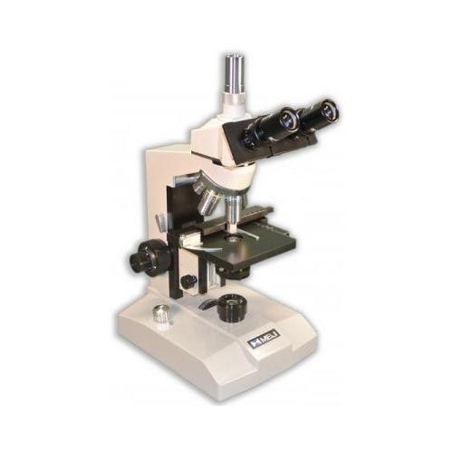 Has a Koehler Halogen LED illumination with forward facing quintuple ball bearing nosepiece. High resolution DIN Standard SM Plan objectives offer crisp, clear, high contrast images and are offered as part of the standard package. A built in integrated Koehler illuminator with a field iris and LED lamp and variable intensity control is provided standard equipment to complement the SM PLAN optics. The low voltage, high intensity, pre-centered halogen lamp provides high level illumination can be adjusted to maximize the evenness of the bulb illumination. The simplest of all the optical microscopy illumination techniques. Sample illumination is transmitted (i.e., illuminated from below and observed from above) white light and contrast in the sample is caused by absorbance of some of the transmitted light in dense areas of the sample. Brightfield microscopy is the simplest of a range of techniques used for illumination of samples in light microscopes and its simplicity makes it a popular technique. The typical appearance of a brightfield microscopy image is a dark sample on a bright background