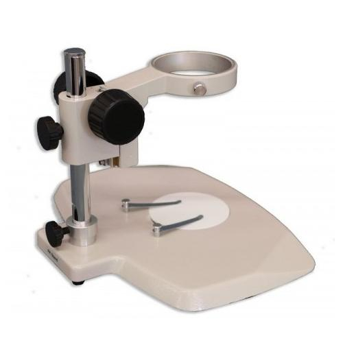 The PK Stand is most popular Ergonomic Wide Plain Pole stand which requires external illumination. This Ergonomic stand can accommodate up to three standard size petri dishes on the top surface. Equipped with an integral F focusing holder with an 84.5mm round diameter opening, mounted on a low profile ergonomic wide cast aluminum alloy stand. Supplied with one 94.5mm diameter reversible black and white stage plate (MA568) and two stainless steel stage clips (MA593). The PK Stand is designed for the zoom (EMZ Series), and can also be used for our turret (EMT Series), fixed (EMF Series) stereo bodies. The PK stand is a great complement to our Stereo microscopes due to the focus block’s ability to be easily raised vertically if needed for special applications.