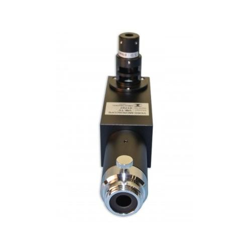 The VM Series high resolution video microscopes have been specifically designed for viewing small electronic components, wave-guides, electro-mechanical assemblies, medical devices, seals, fibers, catheters, etc., which require high magnification visual inspection. The VM Series integrate a CCD video camera, fiber optic illumination system, and high-resolution infinity corrected optics, and are ideal for use in factory automation and machine vision systems. The VM VM-LED Series "C" Mount video microscopes connects an infinity corrected objective to a "C" Mount camera to create a simple high magnification imaging system. The VM Series units are mountable to the VM focus block or other flat mouthing surface via four M4 X M6 threaded mouthing holes with 30 mm. x 40 mm. spacing. The VM Series have a parfocal distance of 45 mm and accepts Din Standard 0.7965” (20.1 mm.) diameter threaded objectives.