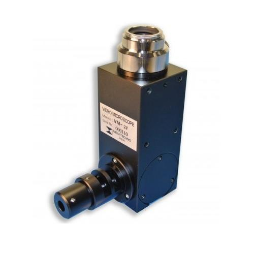 The VM Series high resolution video microscopes have been specifically designed for viewing small electronic components, wave-guides, electro-mechanical assemblies, medical devices, seals, fibers, catheters, etc., which require high magnification visual inspection. The VM Series integrate a CCD video camera, fiber optic illumination system, and high-resolution infinity corrected optics, and are ideal for use in factory automation and machine vision systems. The VM VM-LED Series "C" Mount video microscopes connects an infinity corrected objective to a "C" Mount camera to create a simple high magnification imaging system. The VM Series units are mountable to the VM focus block or other flat mouthing surface via four M4 X M6 threaded mouthing holes with 30 mm. x 40 mm. spacing. The VM Series have a parfocal distance of 45 mm and accepts Din Standard 0.7965” (20.1 mm.) diameter threaded objectives.