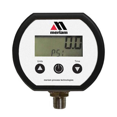 The Meriam Instrument MGF16BN digital pressure gauge successfully addresses the modern demands of process pressure measurement. Pressure ranges are available to 5,000 PSIG at standard accuracy of ± 0.25% of full scale and optional accuracy of ±0.1% of full scale. Compound gauges that can be used for positive pressure measurements and vacuum measurements are also available.