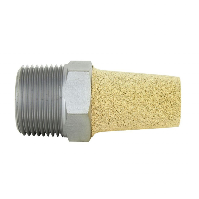 This air tool uses a porous sintered bronze bonded to a copper plated steel pipe threaded fitting in order to create a must - have pneumatic tool. 40 micron filters diffuse air and muffle noise from exhaust tips.