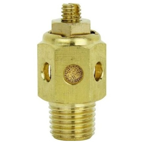 This box of 10 1/4" MNPT high volume speed control exhaust mufflers by Milton Industries, INC® provides air flow control on exhaust tips, exhaust pipes, and exhaust systems for safe and reduced sound levels. A pneumatic tool offering speed control, this air tool provides effective sound deadening for OSHA compliance. The 40 micron filter and sintered bronze sleeve are held securely and protected via an integrated shroud. A combination air diffuser and exhaust silencer, this muffler is the sound deadening system you need.