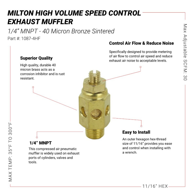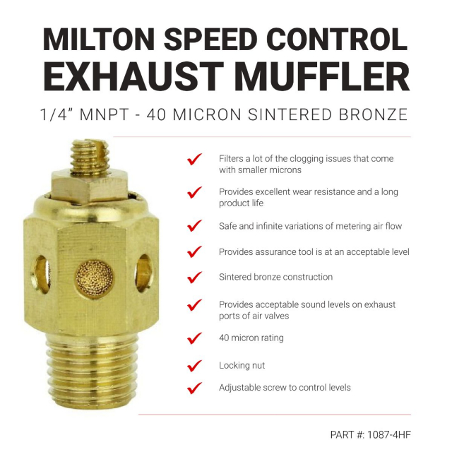 Milton, 1087 - 4HFBK, High Volume Speed Control Exhaust Muffler, 1/4" MNPT