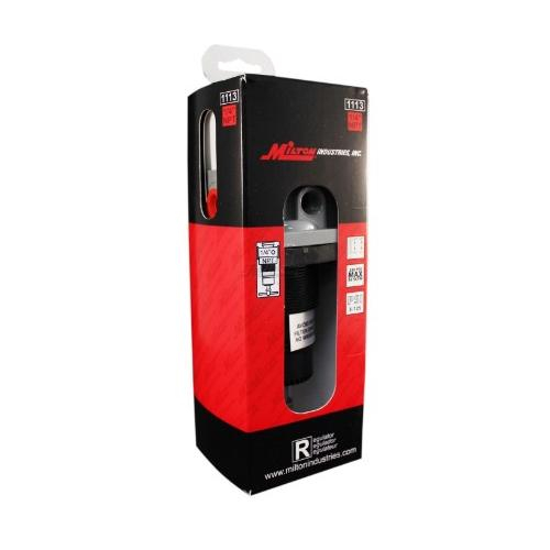 1/4" NPT regulator is the relieving type and offers a stable downstream air pressure over a wide range of air flows with accurate control, fast response time and minimal pressure drop. Offset gage ports can also serve as two 1/4" supply lines. The aluminum die cast body comes with a balanced piston and molded rubber seat. Has a maximum inlet pressure of 250 PSI and offers up to 50 SCFM.