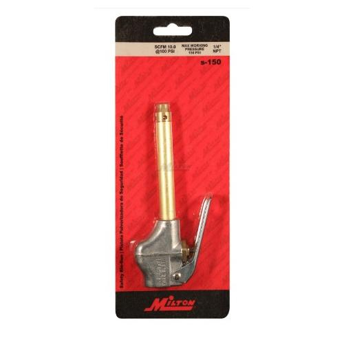 This blow gun has full flow control with OSHA compliant safety nozzle. Air flow will drop below 30 PSI if nozzle is dead ended. This safety lever blow gun offers a 1/4" NPT air inlet and a maximum pressure of 150 PSI.