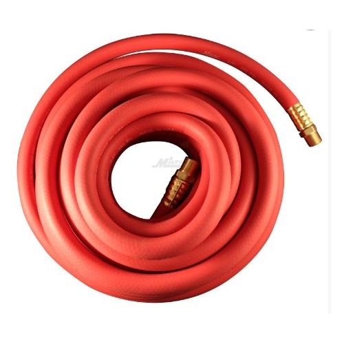 This 25' deluxe heavy duty EPDM rubber hose is designed for tough service station and shop applications. This 2 braid hose is kink resistant and flexible in extreme temperatures, resists abrasions, weathering and ozone effects. 1/4" ID and 5/8" OD hose offers a maximum of 250 PSI and a burst pressure rating up to 1,000 PSI.