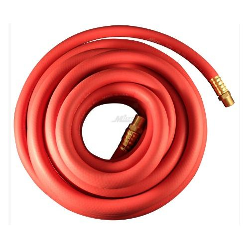 This 50 foot deluxe heavy duty EPDM rubber hose is designed for tough service station and shop applications. This 2 braid hose is kink resistant and flexible in extreme temperatures. Also resists abrasions, weathering and ozone effects. 3/8" ID and 3/8" MNPT both ends