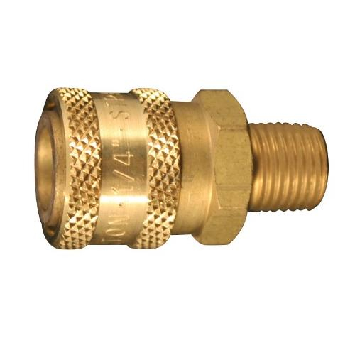 1/4" MNPT straight through couplers are designed for use with high pressure washers and industrial carpet cleaners. These couplers have a maximum working pressure of 5,200 PSI.