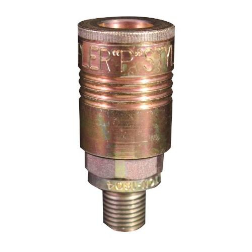 1/4" MNPT P style coupler bodies have 8 locking balls and a Buna-N seal for better retention of plugs. P style couplers have 3/8" basic flow size and a maximum pressure of 300 PSI. Made of heavy duty steel, Milton P style couplers offer air flow of up to 68 SCFM.