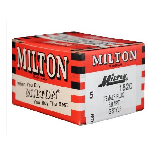 3/8" FNPT G style plugs are made of case hardened steel and are plated to resist rust. G style plugs have a 1/2" basic flow size and a maximum of 300 PSI. Offering air flow of up to 99 SCFM, Milton G style plugs are perfect for applications that require over 60 SCFM.