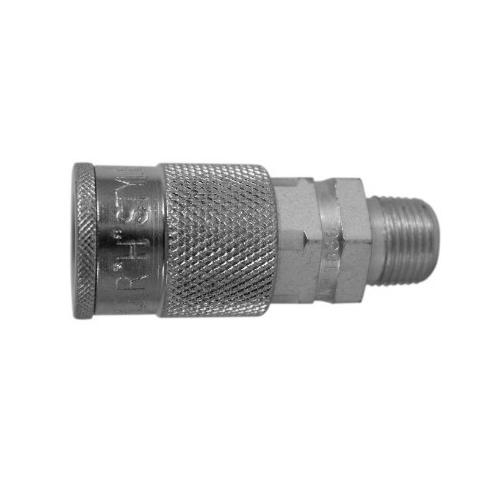 3/8" Male Body H style. Milton H Style couplers are used in larger tool applications requiring more SCFMs. 300 PSI Maximum. Complete with Buna-N Seal.