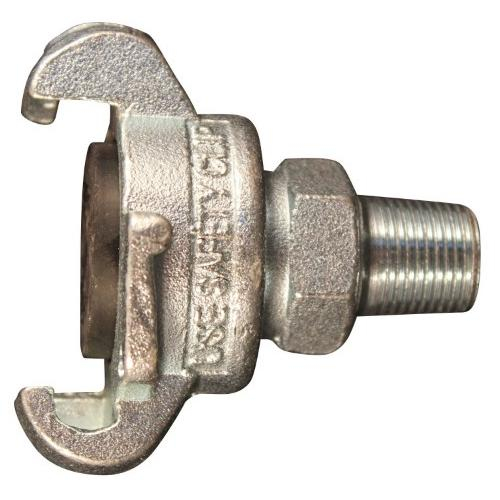 This 1/4" MNPT twist lock universal coupler is made of malleable iron and comes complete with safety clip and lanyard. These couplers with two claws are great for construction, highway maintenance, mining mobile compressors, agriculture and tool rental shop applications. Also known as crowfoot, claw type or Chicago style couplers, these twist lock universal couplers have a maximum working pressure of 150 PSI.