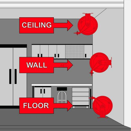 The included bend restrictor will extend the life of the air hose and resists kinks. Easily installed mounting plate with keyhole helps keep the air hose out of the way and off the ground. Keep air hoses organized in shops, garages and even at home. The convenient design offers a pull to obtain the desired length and a simple tug to retract the hose. Designed for use with air hoses featuring a 3/8 inch inner diameter.