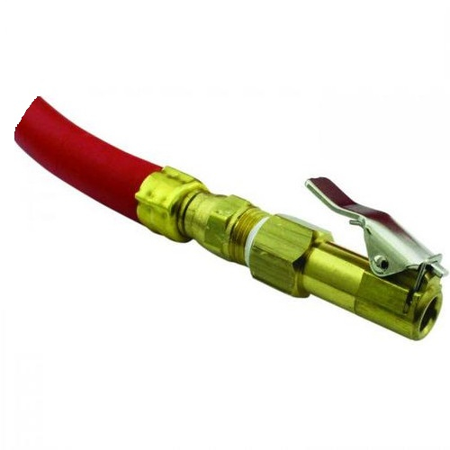 Automatically fill your tires with this unique inflator. Equipped with swiveled grip chuck for quick orientation and an on off shutoff valve, this tool has everything needed to get your wheels back on the road quickly. The seven-foot hose whip keeps the technician outside of the trajectory zone when inflating tires, meeting OSHA Regulation 1910.77. The included heavy-duty regulator offers a maximum inlet pressure of 250 PSI, while the durable dial gauge with shock-resistant rubber boot.