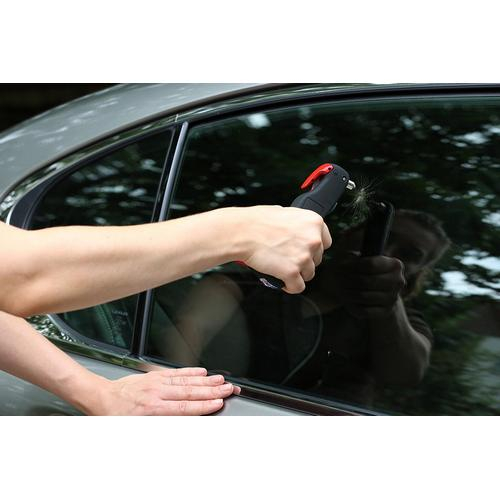 This five in one digital emergency gauge is perfect for travel. This unique tool includes everything you need to stay safe and get back on the road quickly. The digital tire gauge offers an instant, accurate and easy to read display as well as an automatic shutoff after 30 seconds. This amazing tool also offers some great safety features such as a built in hammer to break glass and a seatbelt cutter to help free you quickly in emergency situations. Activate the red flash warning light to alert other drivers. A built in LED flashlight creates an additional safety feature for those all hour roadside emergencies. Includes 2 AAA batteries.