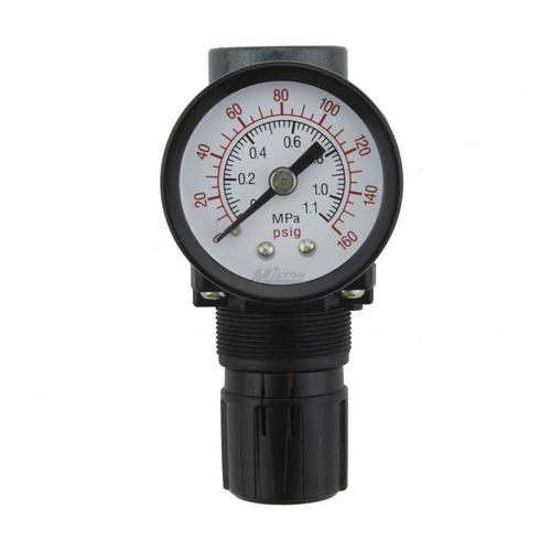 The Milton Simply Better Air™ system provides the best solution to manage compressed air. All Milton FRL components can be installed with modular accessories or hard piped. Includes metal mounting bracket with two screws to attach to unit. Mounting bracket does not include mounting hardware to mount bracket to wall. FRL component has a temperature range between 25°F and 140°F or -5°C and 60°C. Includes a dial gage dial gauge diameter measuring at 1-5/8" and reads in PSI with a range of 0 to 160 PSI and 0 to 1.1 MPa. Dial gauge features metal construction and 1/8" center back mount. This regulator, along with all Milton regulators, includes blank out plate with two screws to cover up gauge port opening when not in use and a lockout knob that allows set PSI pressure.