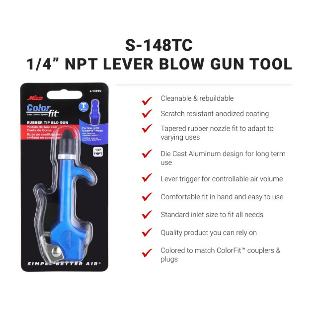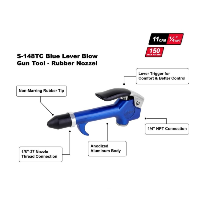 Milton S-148TC 1/4" NPT Lever Blow Gun Tool, Rubber Tip Nozzle, Blue