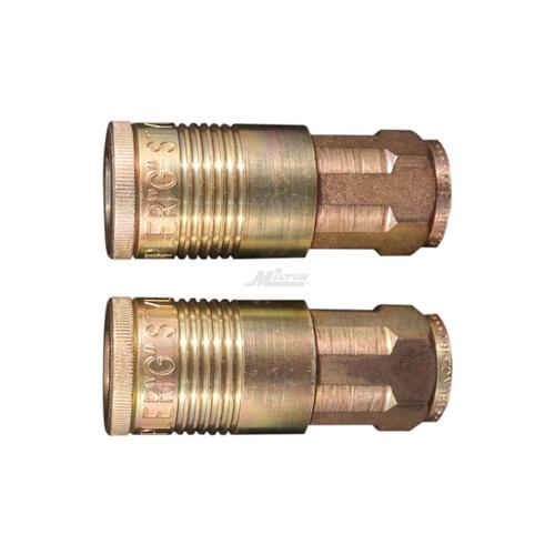 Two pack 1/2" FNPT Milton G style couplers are used in applications that require over 60 SCFM. G style couplers are made of steel and plated to resist rust. There are two Milton G style couplers, but both will function the same with G style plugs. These are the highest SCFM rated couplers.
